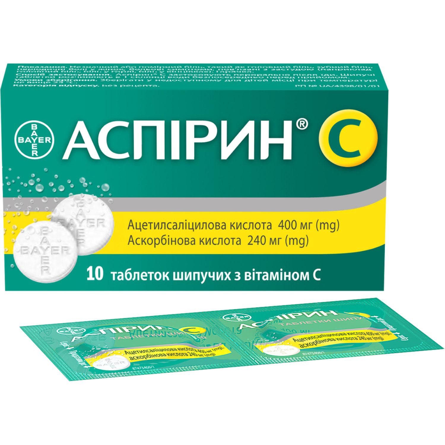 Aspirin C Effervescent Tablets 10 pcs combine acetylsalicylic acid (aspirin) with vitamin C (ascorbic acid) in a quick-dissolving effervescent formula to help relieve pain, fever and inflammation associated with headaches, colds, flu, menstrual cramps and muscle aches. Fast-acting and easy to take after dissolving in water.